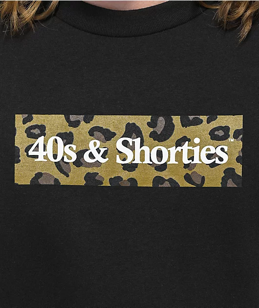 The Leopard Logo Black T-Shirt by 40s & Shorties displays the brand’s logo over a screen-printed leopard print box.