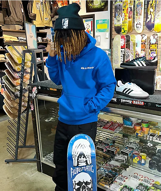 Coming in a royal blue colorway, the Text logo hoodie from 40s & Shorties offers a simple and clean look with screen-printed logo script at the left chest and back in boxy font. The hoodie is constructed from a breathable and soft blend of cotton and poly