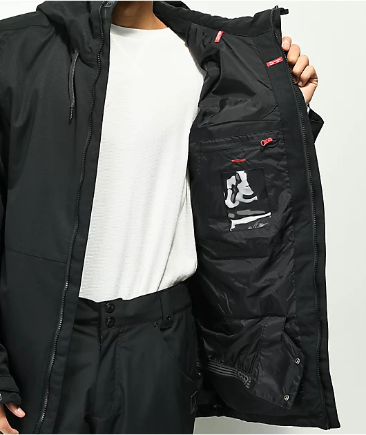 Fly through flurries and power through powder in the Foundation black 10k snowboard jacket from 686! This coat comes with a water-resistant polyester shell and built-in powder skirt, perfect for keeping the elements at bay while you shred, while a variety