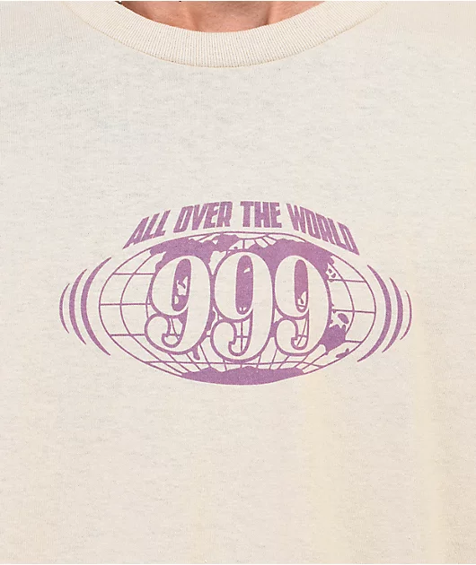 Coming in a cream white and purple color scheme, the Affirmations t-shirt from 999 Club by Juice WRLD features a chesty graphic with \”999\” situated over a globe, with \”all over the world\” written above. Made of breathable midweight cotton, the Affirmation
