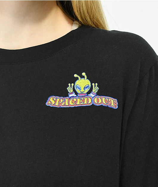The Aby Spaced Out t-shirt from A.LAB comes in a long sleeve construction with a black colorway, adorned on the left of chest with an embroidered alien graphic and script reading, \”Spaced out.\” This comfy t-shirt is made of 100% cotton and features an add
