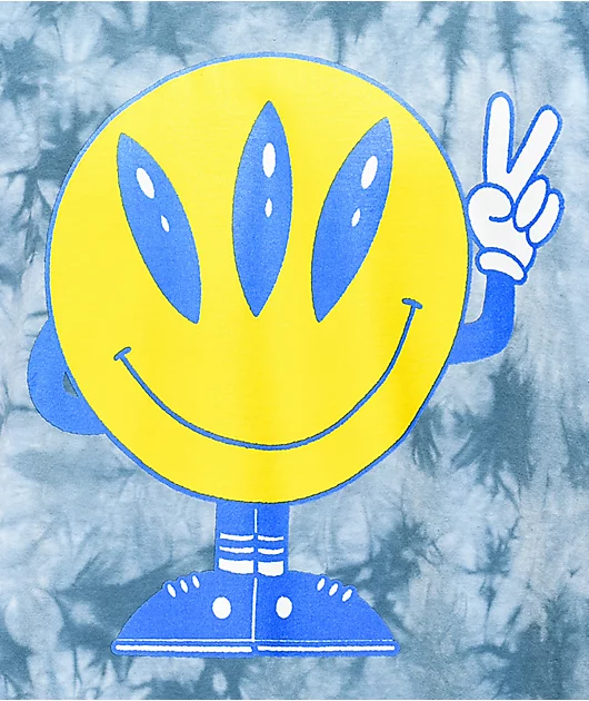 For a look that’s sure to put a smile on your face, grab the Peace Blue Wash T-Shirt from A.LAB. This cotton tee offers a pure cotton construction and features a blue and white tie-dye treatment throughout. A screen-printed graphic of a three-eyed smile f