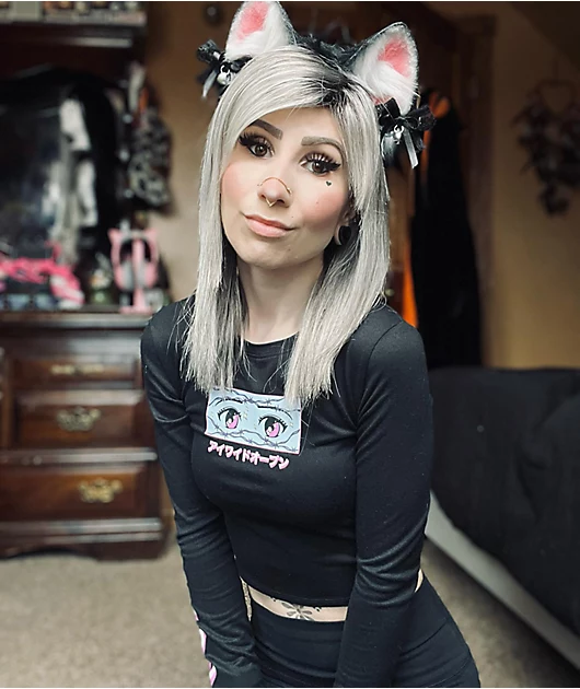 A.LAB Freckle Anime Eyes Black Crop Long Sleeve T-Shirt