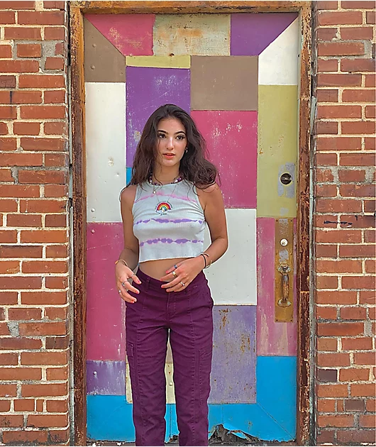 Sweet and soft, the Honey rainbow tie dye tank top from A-Lab is here to add a cynical touch to your sunny-day ensembles. This tank comes with a cropped, unfinished hemline and thick straps, perfect for tossing on when the weather heats up, with a cozy co