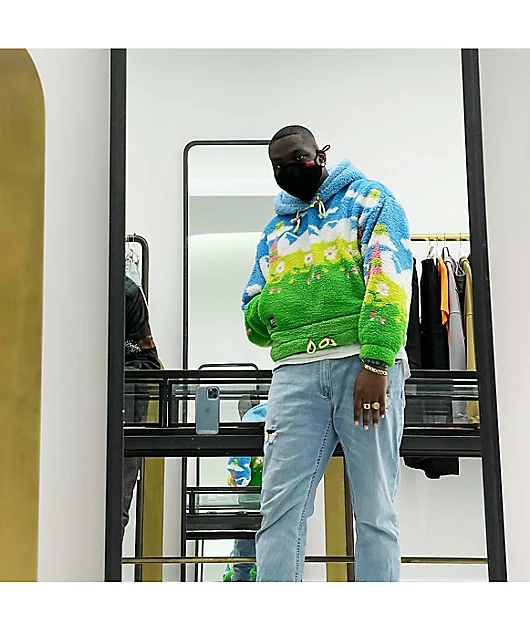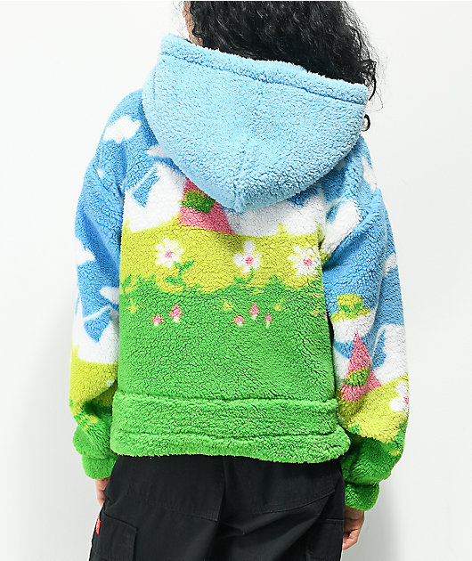 A-Lab Kadley Trippy Landscape Blue & Green Crop Sherpa Hoodie