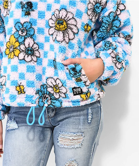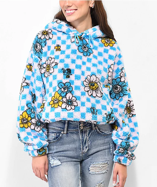 A-Lab Kendallie Flower Checkered Pink & Blue Hoodie