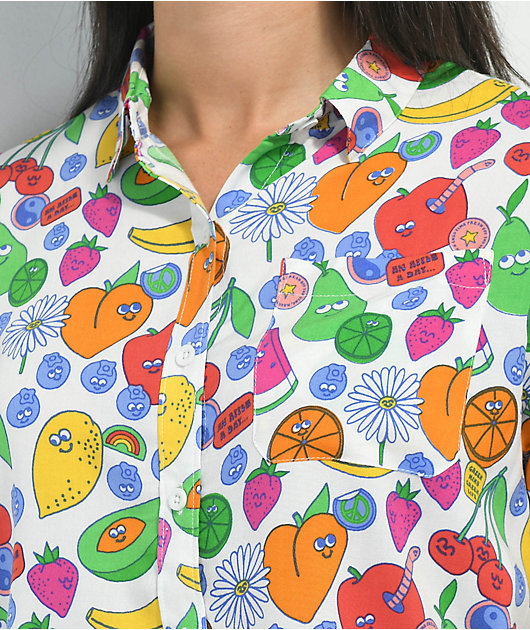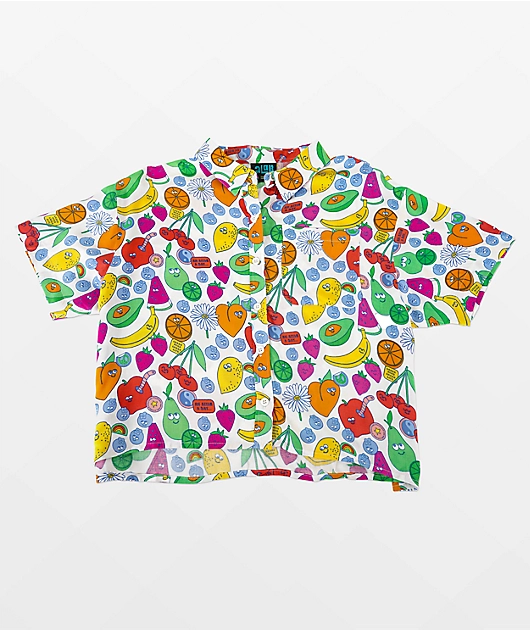 A-Lab Kona Mixed Fruit White Crop Short Sleeve Button Up Shirt