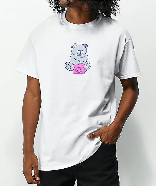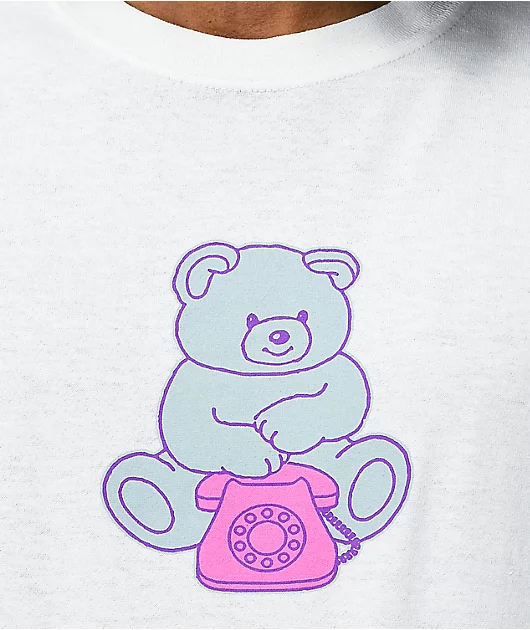 Cop a tee that’ll make everyone ROFL with the LOL GTFO white t-shirt from A.LAB. This white tee has a screen-printed graphic of a cute teddy bear sitting down with a pink telephone between its legs at the left chest, while the larger matching graphic on t
