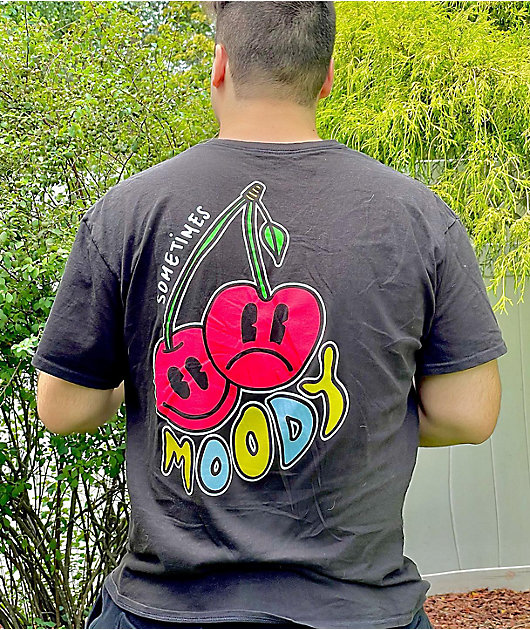 Wear your emotions on your shirt with the Moody black t-shirt from A.LAB! A couple of cherries across the back, one happy and one sad, combine with the \”Sometimes moody\” text to create a fun look that conveys just how quickly our frame of mind can chang