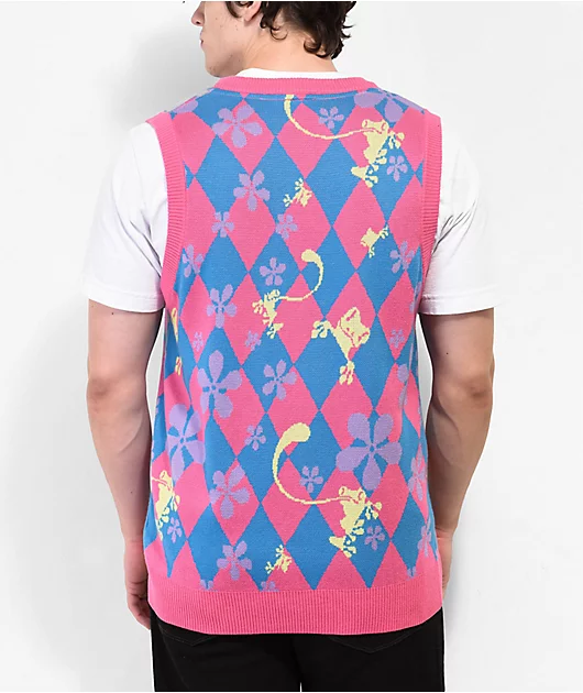Have the best day ever with the Vest Day Ever from A.LAB, coming in an eye-catching pink colorway. Woven images of frogs and flowers can be seen throughout, adding even more quirky style to the vest. Made from a cotton-acrylic blend, this sleeveless sweat