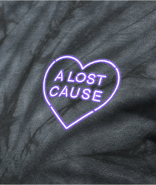 Light up your daily outfits with the Death’s Embrace grey tie dye boyfriend t-shirt from A Lost Cause! This grey tie dye tee features a purple neon sign heart logo at the left chest, and a neon sign heart at the back with Death kissing a woman at the cent