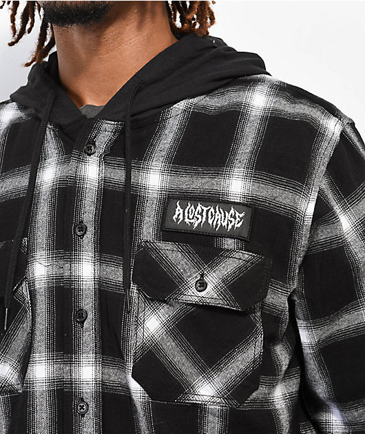 A Lost Cause Loser Squad Black & White Hooded Flannel Shirt