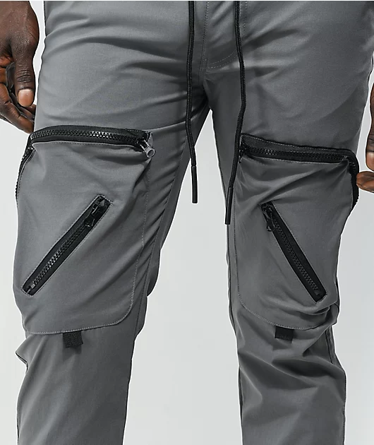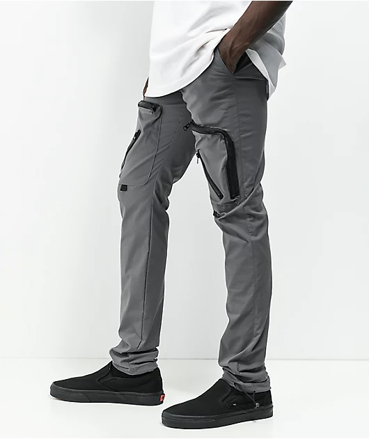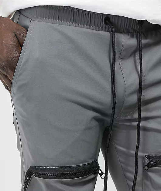 Add a functional accent to your outfits with the grey nylon cargo pants from American Stitch! Built from a blend of nylon and spandex, these stretchy slacks come in an all-grey colorway, with a slim-fitting silhouette and drawstring-adjustable waist and c