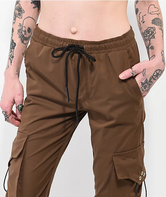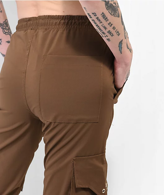 In a brown colorway comes the Multi Pocket jogger pants from American Stitch, offering storage with dual slash hand pockets, a right seat pocket, and 2 cargo pockets on either thigh for a total of 4. These athletic pants offer a snug fit with an elastic w