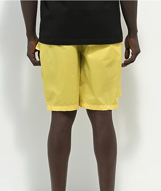 These nylon cargo shorts from American Stich are made from quick-drying, breathable polyester, and come in a striking canary yellow colorway. The elastic waistband has an adjustable drawstring with custom aglets, and both thighs are equipped with cargo po