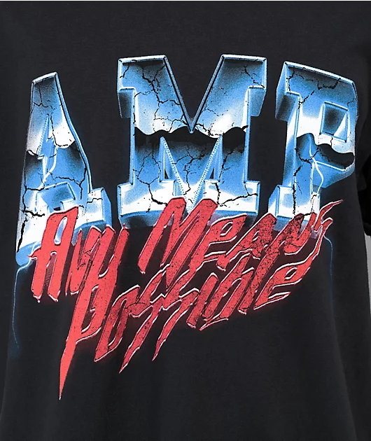 In a vintage black wash colorway comes the Lightning t-shirt from AMP, showing off the brand name across the chest with subtle streaks of lightning for an electric look; showing more script below in a red accent that reads \”Any means possible.\” This every