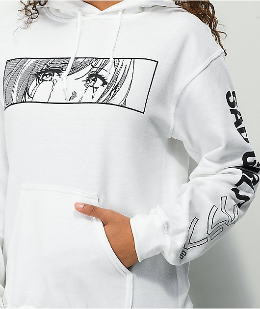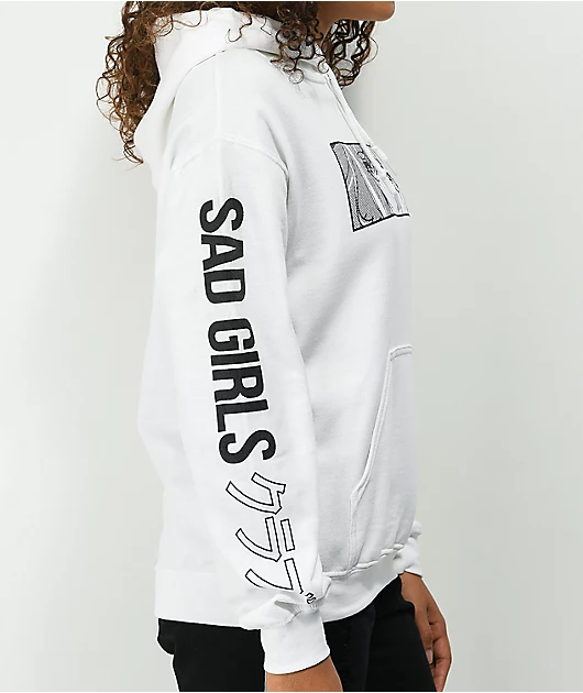 Add some sad boi vibes to the hoodie rotation with the Ocean Eyes white hoodie from Animebae. This white hoodie has a screen-printed box graphic of a girl crying, while the \”SAD GIRLS\” script emblazoned on each sleeves complete this tender look. A soft fl