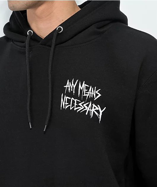 The Always Smile hoodie from Any Means Necessary comes in a black colorway with screen-printed brand graphic on the left of chest in white and a graphic of a two headed monster smiling on the back. Above the monster is script reading, \”I can always make y