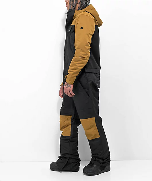 From Aperture comes the Mork snow suit, in a tan & black colorway boasting a 10K waterproof rating. The one-piece design ensures complete protection from the snow, as this insulated onesie has a 4 pocket layout with an additional chest pocket. With zipped
