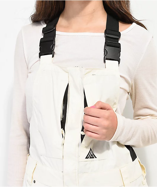 From Aperture comes the Stella snowboard bib pants in a tofu colorway, with a solid off-white construction delivering 10K waterproof protection. The nylon shell features a variety of storage options, as a convenient zipper design and adjustable webbed str
