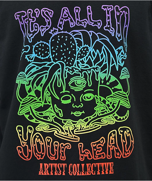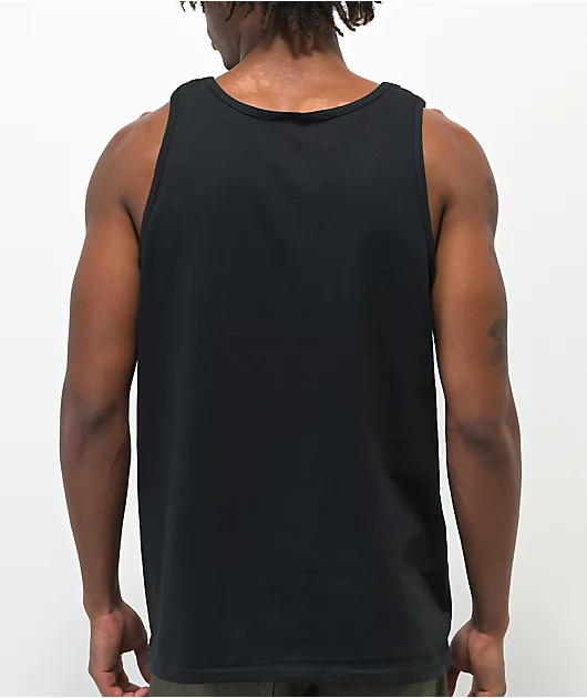The We Trippy black tank top from Artist Collective comes in a standard, loose-fitting tank top silhouette, and is constructed from a lightweight and breathable cotton. Screen-printed at the front of the tank top is a rainbow-colored graphic, and text abo