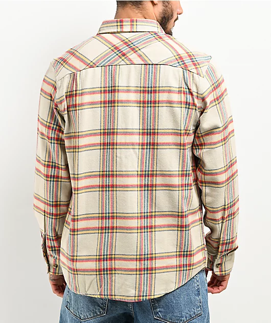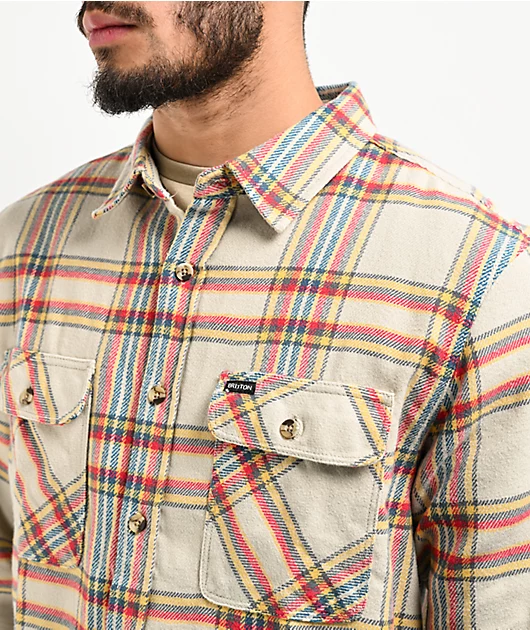 Brixton introduces the Bowery Flannel Shirt in a sand and red colorway. This button-up shirt has a standard fit and is made from a vegan anti-scratch wool fabric that adds to the overall comfort. The shirt features subtle branding on the left chest p