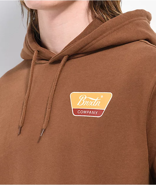 The Linwood Brixton hoodie comes in a brown colorway with a retro Brixton logo in yellow and red screen-printed onto the left of chest and enlarged on the back for bold branding. This hoodie comes in a classic pullover construction with a drawstring-adjus