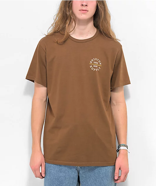 In a brown colorway comes the Oath V t-shirt from Brixton, giving subtle accents of gold in screen-printed brand text left of chest and enlarged on the back for all to see. This every day t-shirt is made from a midweight cotton material, offering easy all