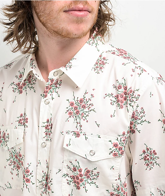 The Wayne Stretch short sleeve button up shirt from Brixton comes in a cream colorway and features floral print pattern throughout. The shirt offers exceptional comfort and mobility with a blend of cotton, nylon and spandex, and offers a traditional look