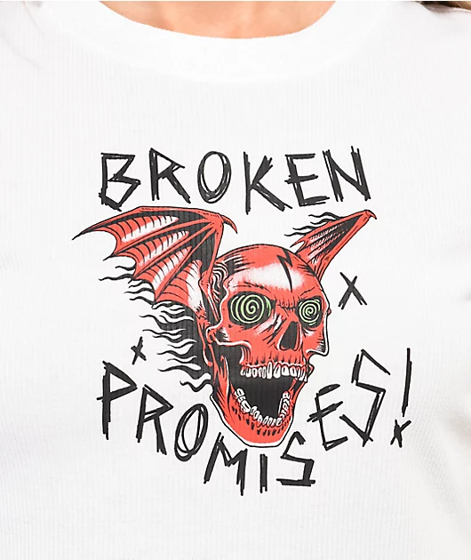 Broken Promises Batwing White Ribbed Crop T-Shirt