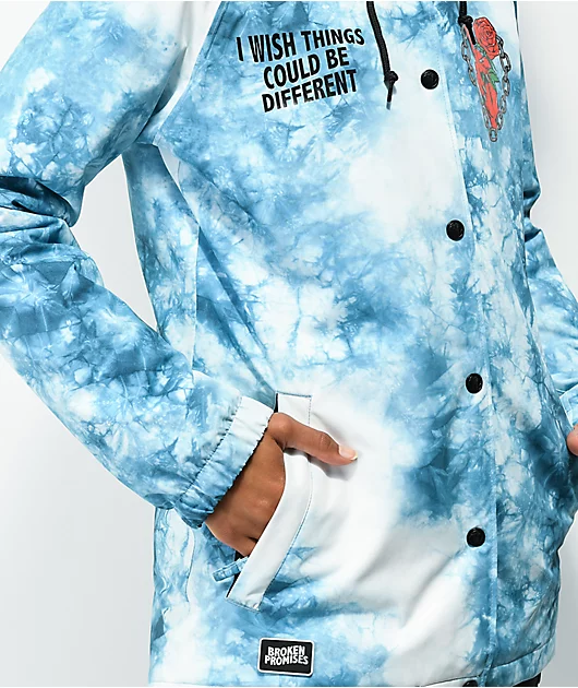 Broken Promises Could Be Different White & Teal Tie Dye Snowboard Jacket