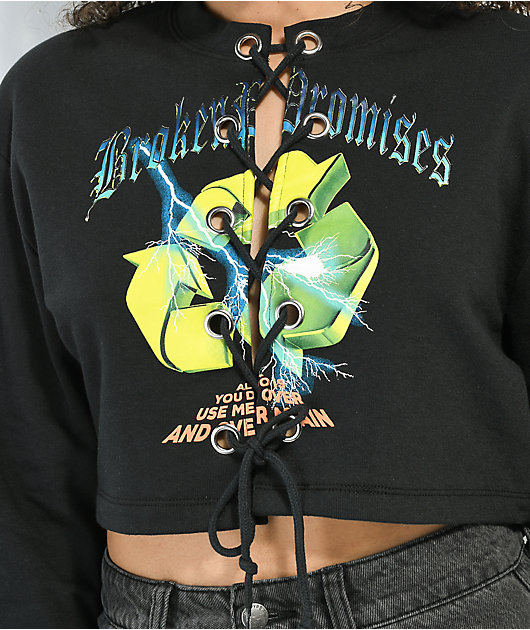 Broken Promises Garbage Black Lace Front Crop Crewneck Sweatshirt