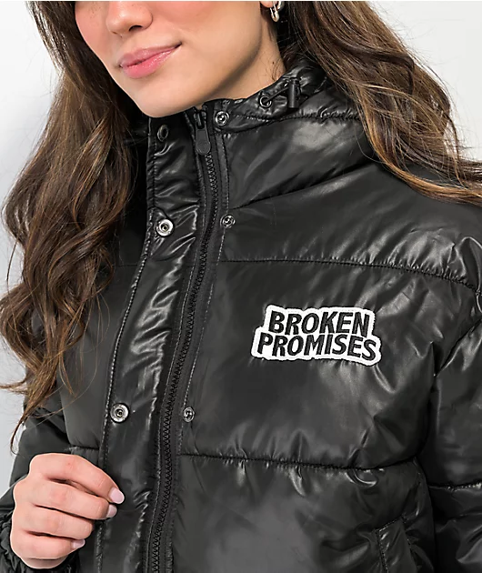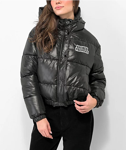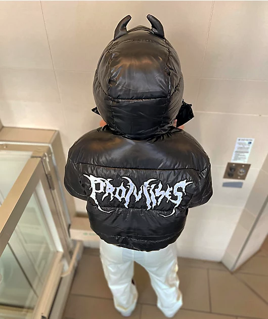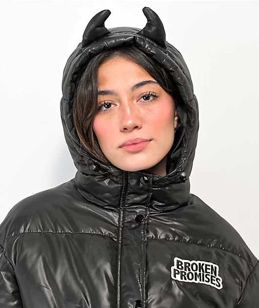 Broken Promises Graveyard Horned Black Hooded Puffer Jacket