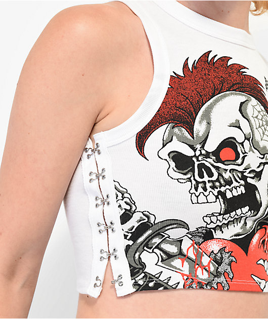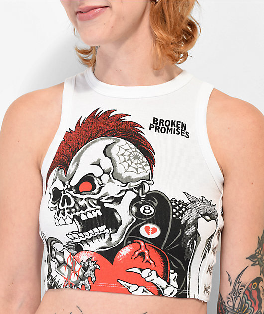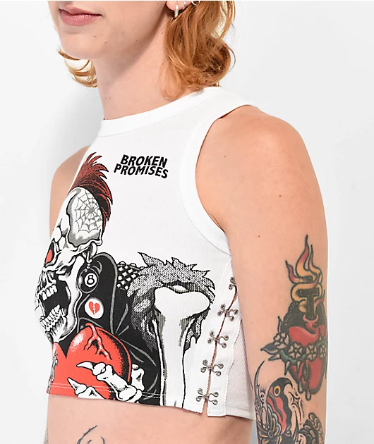 Broken Promises Heartthrob Skull White Crop Tank Top