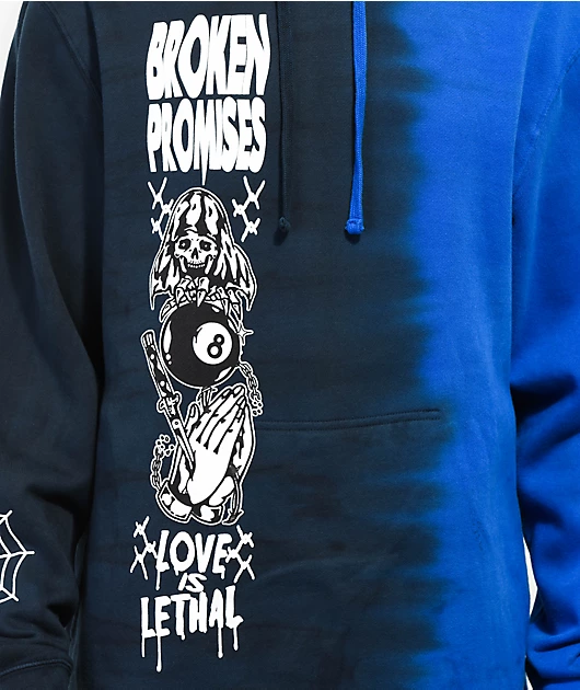 Broken Promises Love Is Lethal Blue Split Tie Dye Hoodie