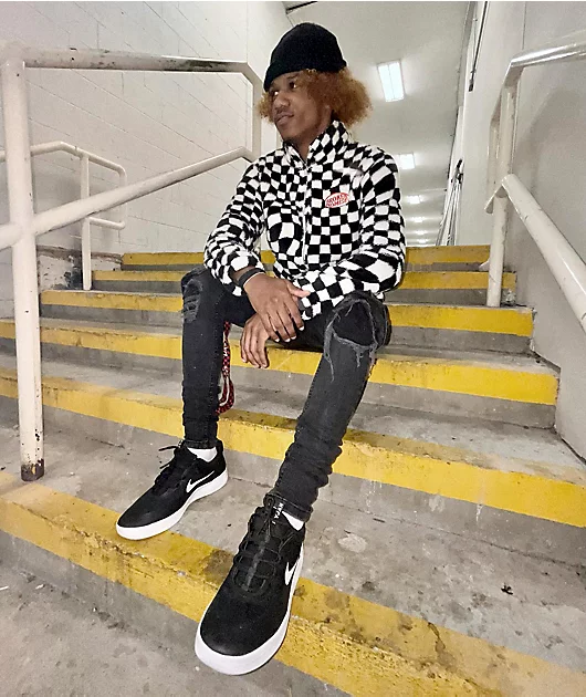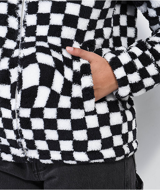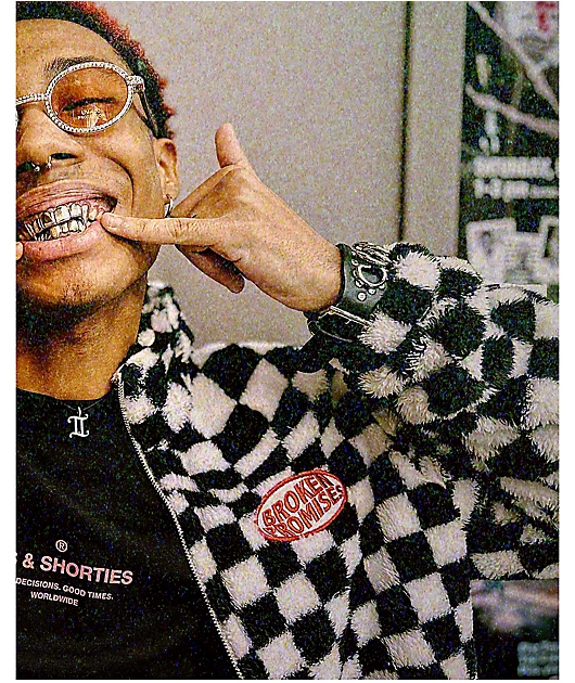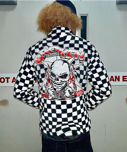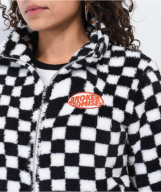 Broken Promises On My Own Black & White Checkered Sherpa Fleece Jacket