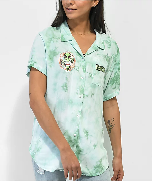 Broken Promises Outsider Green Tie Dye Short Sleeve Button Up Shirt