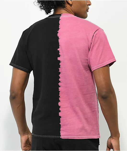 the misa split dye t-shirt from the broken promises x death note collaboration has a unique pink and black split dye effect throughout, with a large s