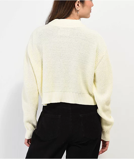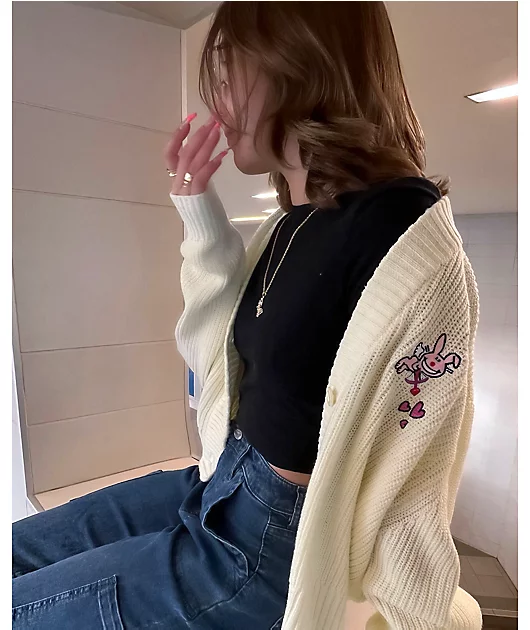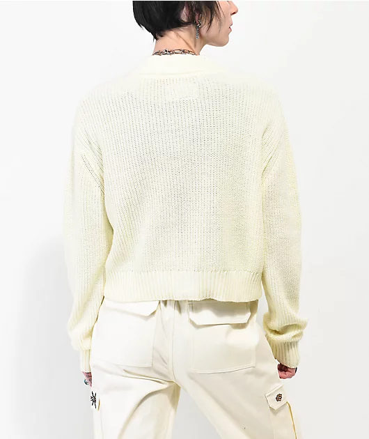 Broken Promises x Happy Bunny Focus On Me Cardigan Ivory Crop Sweater