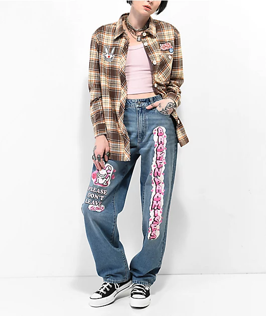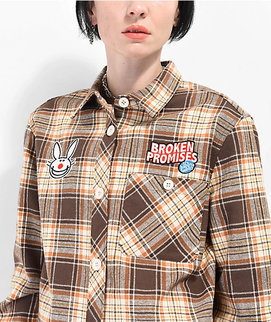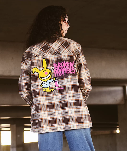 Broken Promises x Happy Bunny Graffiti Brown Flannel Shirt