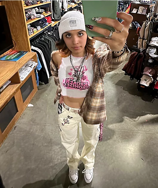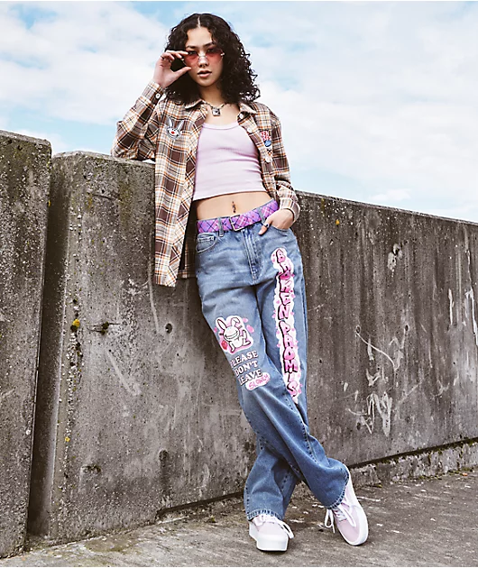 Broken Promises x Happy Bunny brings the Graffiti flannel shirt in a brown colorway, offering up a classic PNW style with a plaid patterning throughout. Across the chest is the embroidered image of the Happy Bunny on the right side chest and the collabora