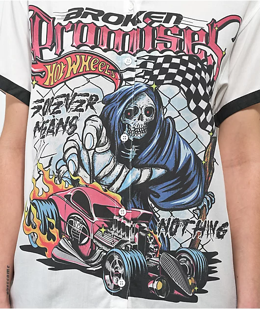 Broken Promises x Hot Wheels Ride Forever White Short Sleeve Button Up Shirt