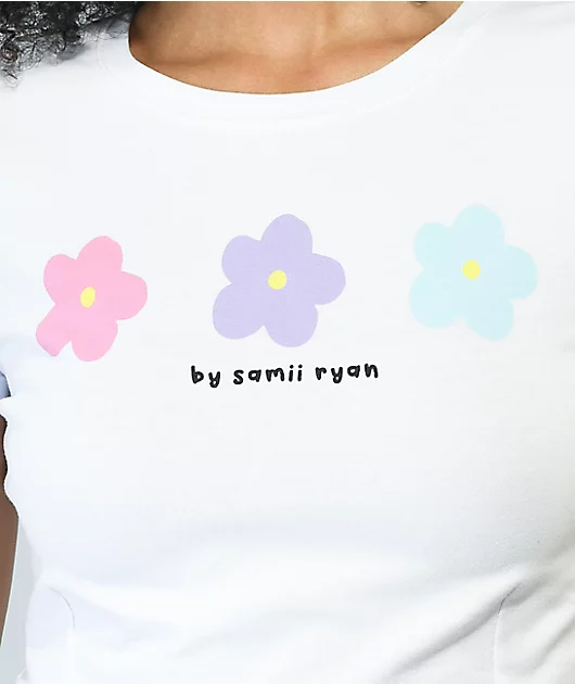By Samii Ryan Daisy Baby Doll White Crop T-Shirt