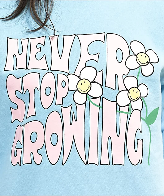 The Smiley Never Stop crewneck sweatshirt from By Samii Ryan is as comfy as it is stylish. This pullover has a colorblock configuration, with the torso and sleeves in baby blue, and the collar, bottom hem, and sleeve cuffs, in pastel pink. Made from a hig