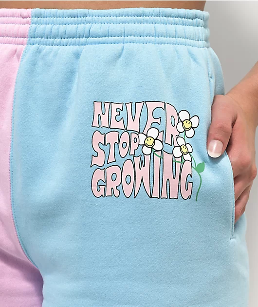 By Samii Ryan Smiley Never Stop Pink & Blue Split Sweat Shorts