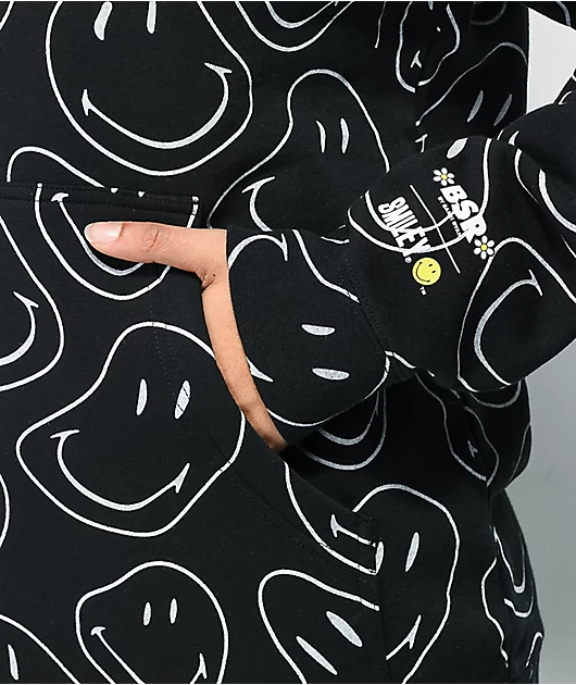 Add a psychedelic twist to your sweatshirt rotation with the Universe black hoodie from By Samii Ryan x Smiley! The hoodie’s fixed hood and fleecy interiors keep it warm and comfortable, while screen-printed graphics of distorted smiley faces envelop ever
