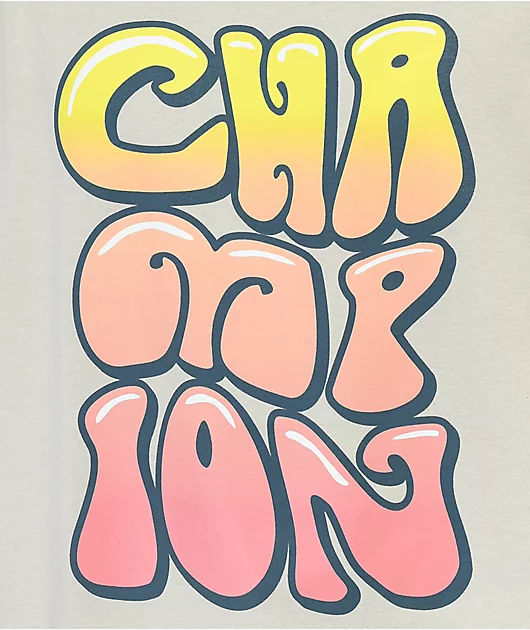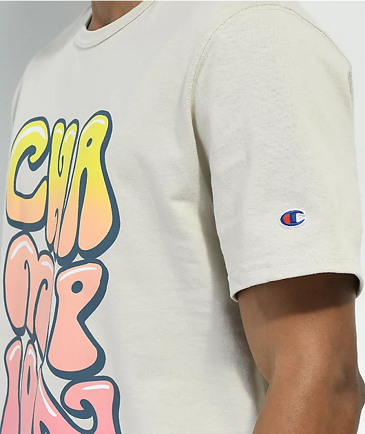 From Champion comes the Bubble Wrap t-shirt in a earthy pebble colorway. The Champion tee is made using durable heavyweight cotton, and features champion retro-inspired champion lettering on the front with a orange and yellow tones. With a ribbed crew col