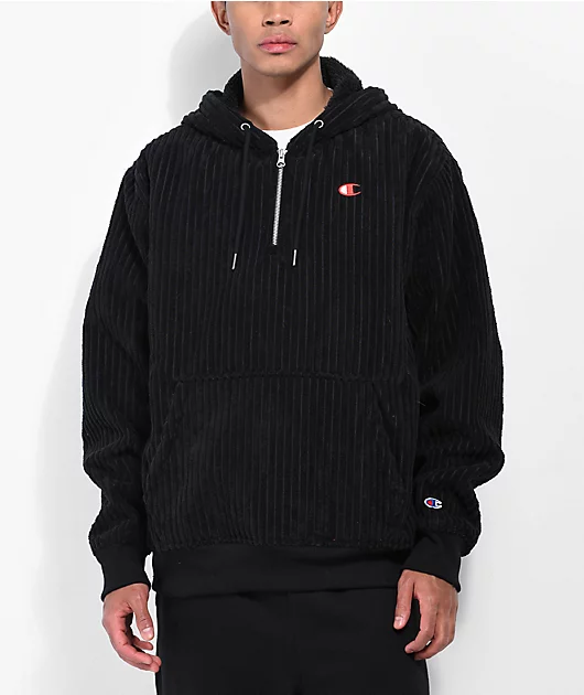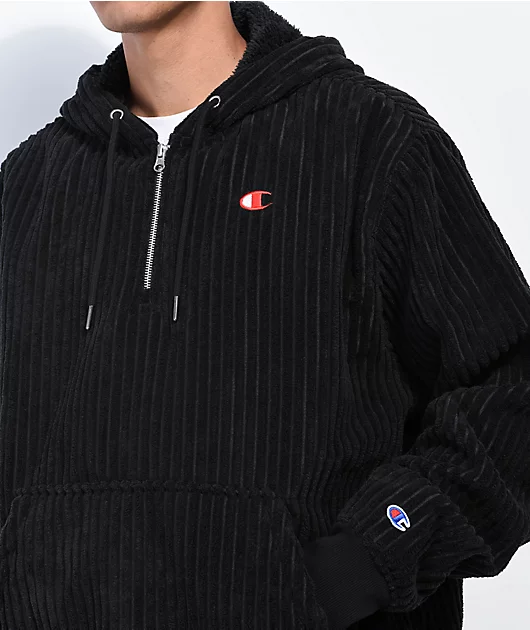 Champion Hi Pile Black Corduroy Fleece Hoodie