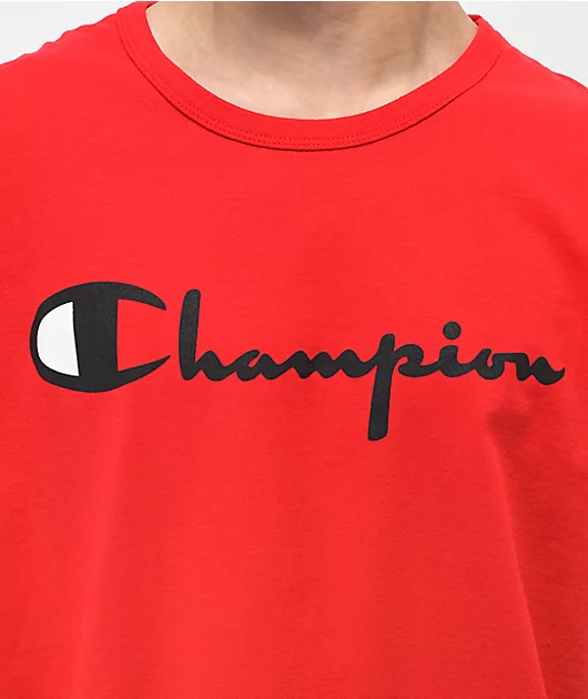 The Lightweight t-shirt from Champion is constructed from an extraordinarily soft and lightweight cotton that comes in a bright red colorway. Decorating the tee is a screen-printed classic Champion logo script across the chest for bold and recognizable br