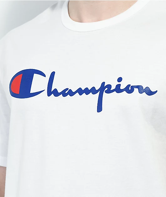Made from premium, super lightweight cotton, this Champion t-shirt is sure to become a favorite. This Champion shirt has a comfortable, tagless crew neck collar, a short sleeve silhouette, and classic white colorway. Screen-printed on the chest is the Her